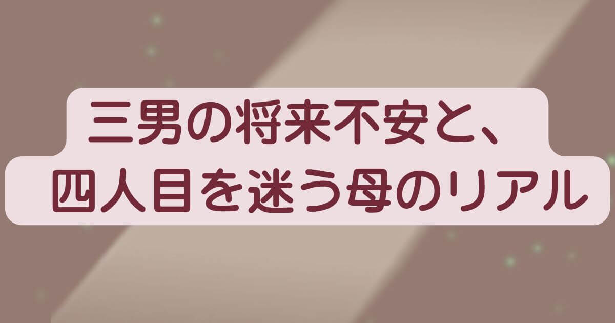 三男の将来不安と「もう一人どうする?」で揺れる母の本音