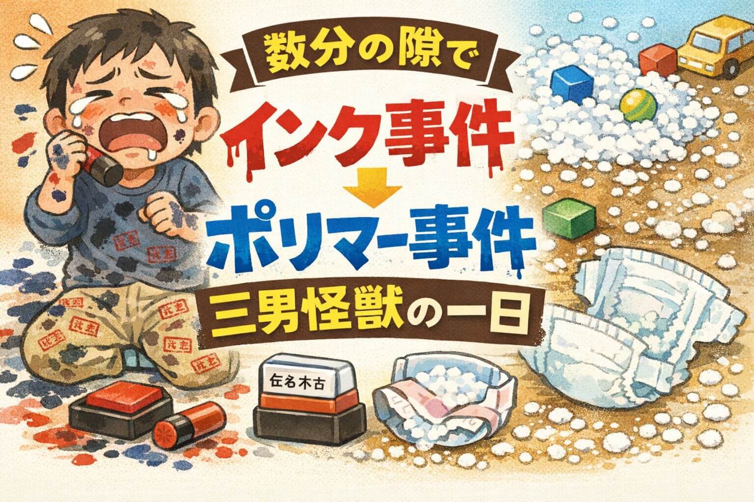 お風呂掃除してリビングに戻ってくると、三男が隅っこでなにかゴソゴソ。