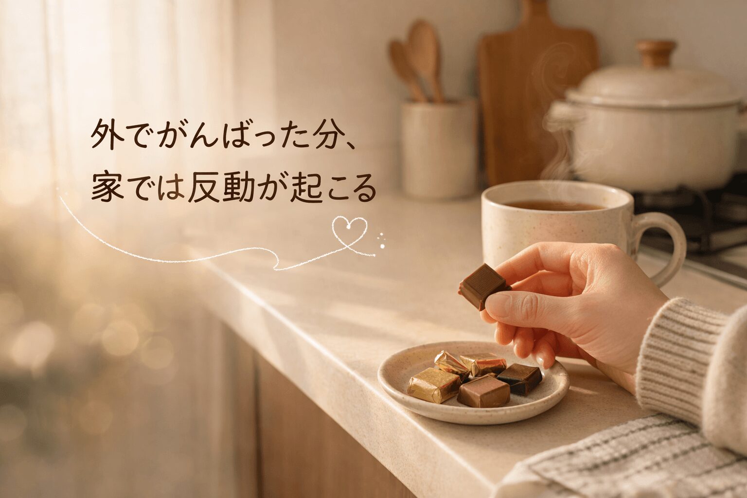 ごはん作りながらキッチンでこっそりチョコをつまんでる。